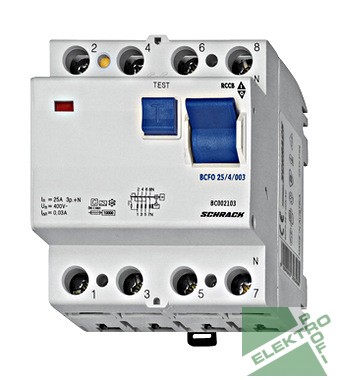 SCHRACK BC000110 Hibaáramkapcsoló 10kA, 100A, 4 p.lus., 100mA, AC