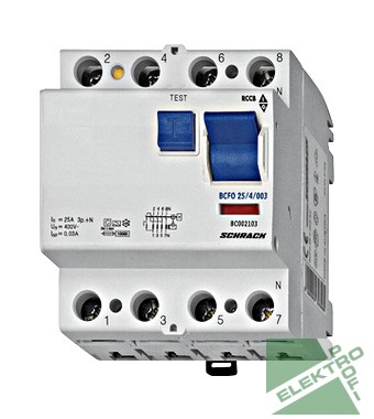 SCHRACK BC002130 Hibaáramkapcsoló, 4P/25A, 300mA, AC, 10kA
