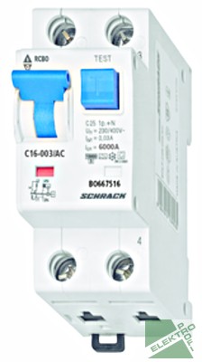 SCHRACK BO667516 Vezetékvédő kapcsoló C 16A, 30mA, 1+N, AC, 6kA