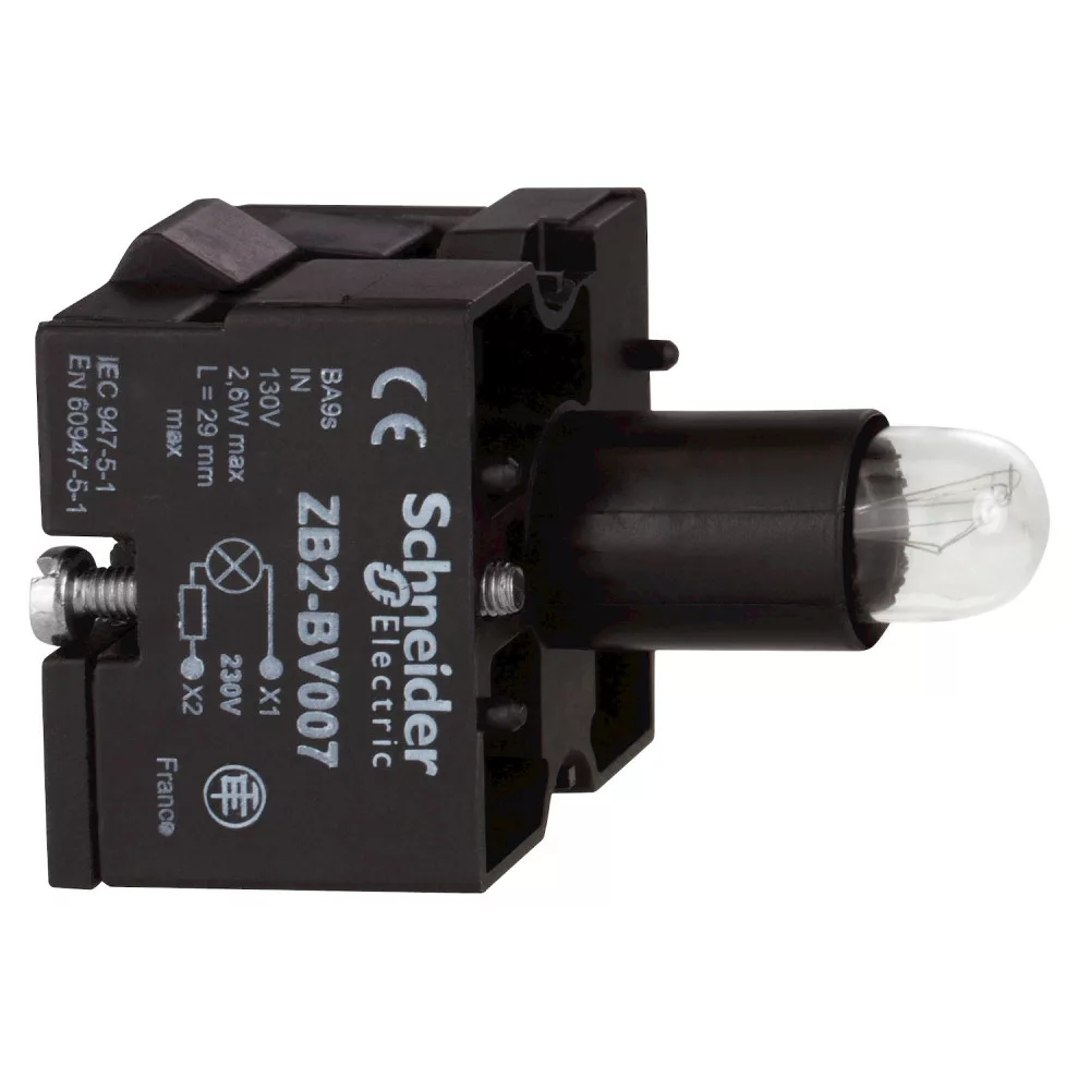 Schneider ZB2BV007 Közvetlen betáplálás ellenállással, 130V izzóval, 230V