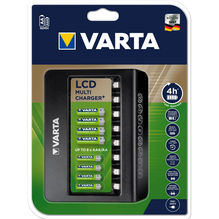 Varta LCD Multi töltő üres 1-8 db AA vagy AAA akkumulátorhoz (57681)